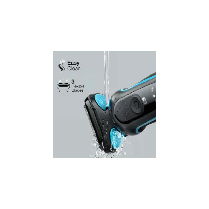 Rasage de près facilité : ce rasoir électrique à 3 lames flexibles s’adapte avec fluidité aux contours de votre visage, tandis que le système EasyClean permet un nettoyage rapide et simple, sans avoir à retirer la tête de rasage.