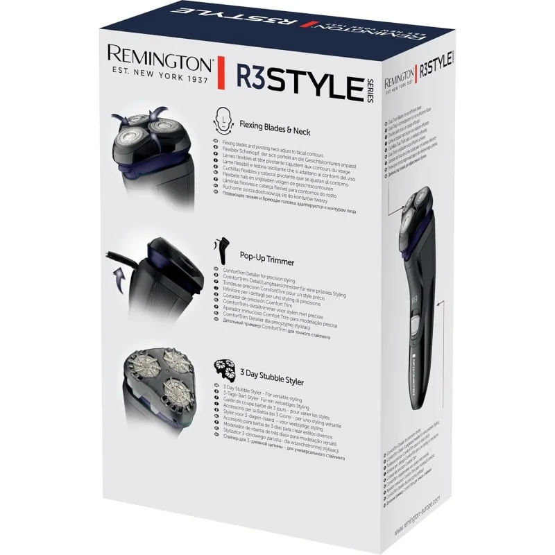 Remington Rasoir Électrique [Rasage à Sec] R3 (Utilisation sur Secteur, Têtes Rotatives 360°, Tondeuse Précision Rétractable Comforttrim + Guide Coupe de Barbe de 3 Jours, Ergonomique) Tondeuse R3002