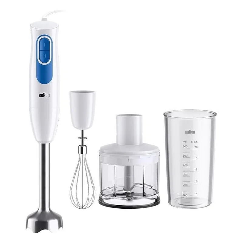 Fonction 3 en 1 polyvalente : ce mixeur plongeant est conçu pour effectuer facilement les tâches de mixage, hachage et fouettage grâce aux accessoires inclus, ce qui en fait un outil complet pour la cuisine quotidienne.