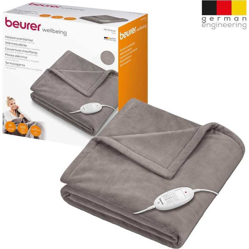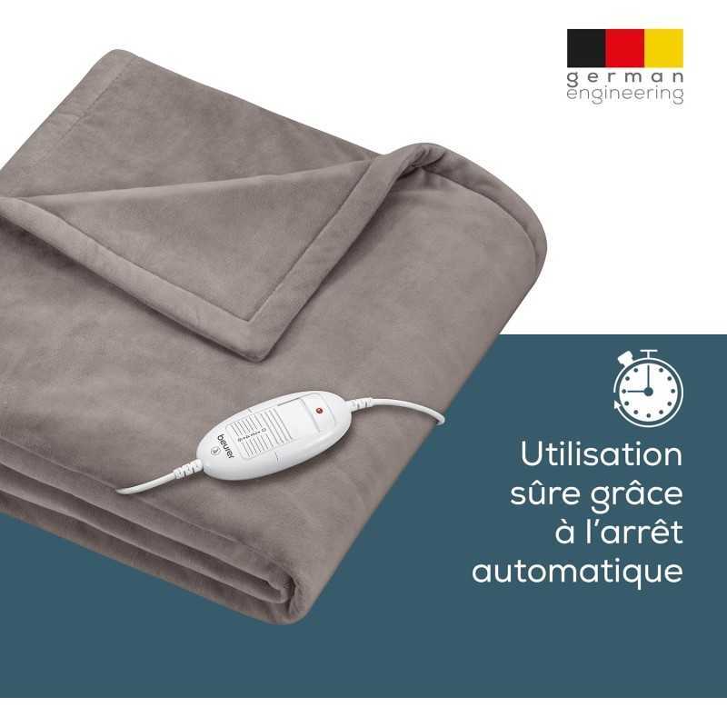 Beurer HD 75 Cozy Couverture chauffante, couverture électrique confortable en apparence de fourrure, 6 réglages de température, lavable en machine, avec arrêt automatique, taupe