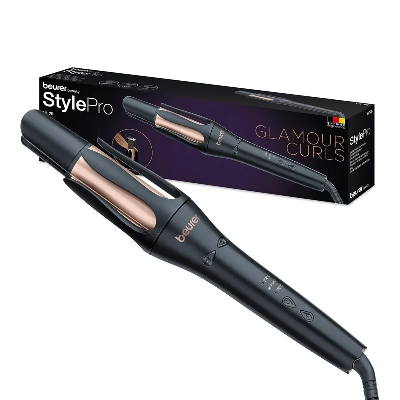 Fer à boucler BEURER - Niveau de température : 3 Niveaux de température (170°, 190°, 210°) - 2 sens de boucles utilisables - Smart Timer, émet un signal sonore lorsque la boucle est prête - Arrêt automatique - Tige chauffante à revêtement céramique et tourmaline - Poignée verticale pour une utilisation facile - Utilisation simple grâce au poids léger du produit - Poids : 560 g - Dimensions : 13,1 x 8,5 x 28,6 cm - Couleur : Noir - Garantie 3ans